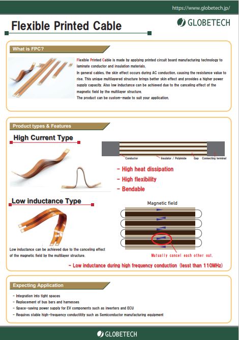 Flexible Printed Cable Flexible Printed Cable is made by applying printed circuit board manufacturing technology to laminate conductor and insulation materials.